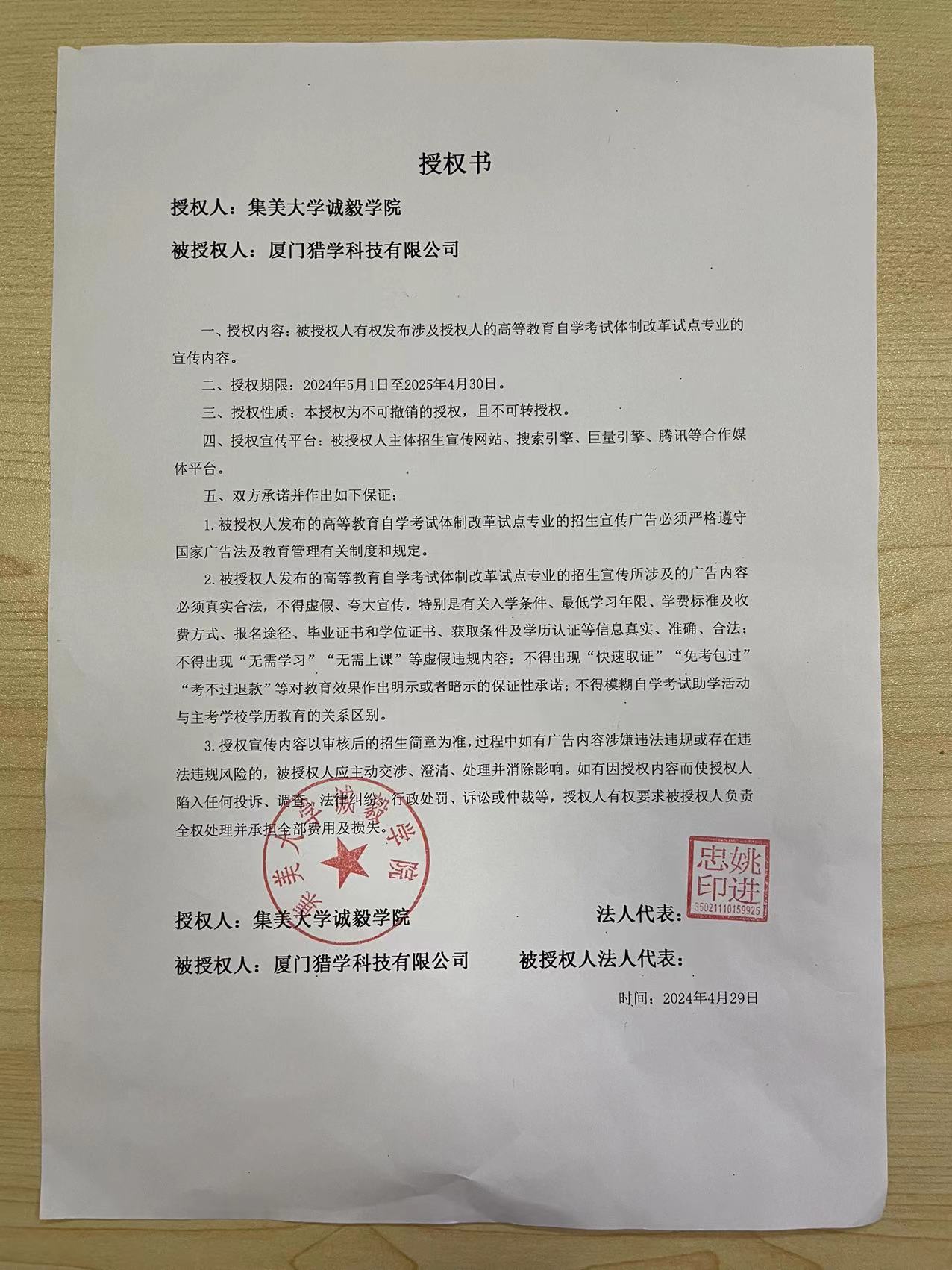 學生入學后,學校根據各專業開考計劃進行教學安排,組織學生參加考試。學生通過國家或省統一組織的考試,成績合格者,將獲得相應主考學校集美大學、集美大學誠毅學院、華僑大學和省自考委聯合頒發(fā)、全國統一印制、教育部電子注冊的大專或本科畢業證書,國家承認學歷;符合相應主考學校授予成人高等教育本科畢業生學士學位相關規(guī)定的條件,可獲得相應主考學校成人高等教育本科學士學位。對于國家或省自考委規(guī)定的考試課程尚未全部合格者,發(fā)給相關的學業證明書。